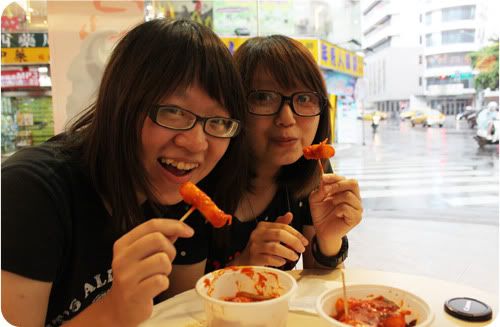 我+KERO+哆啦 三人超津津有味地吃著辣炒年糕